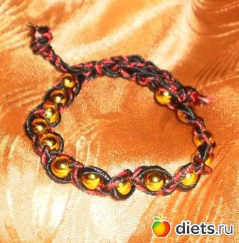 Принцип косички - в три нитки, на одну из них нанизывала бусины. Честно, пришлось немного повозиться. Когда буду следующий раз делать, подробно всё сфоткаю и выложу.