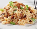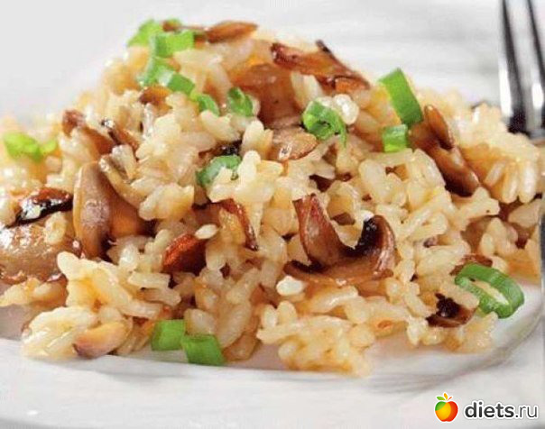 3. К моркови и грибам добавить еще 1 ст.л. растительного масла и засыпать рис. Хорошо все перемешать и дать рису впитать в себя масло.