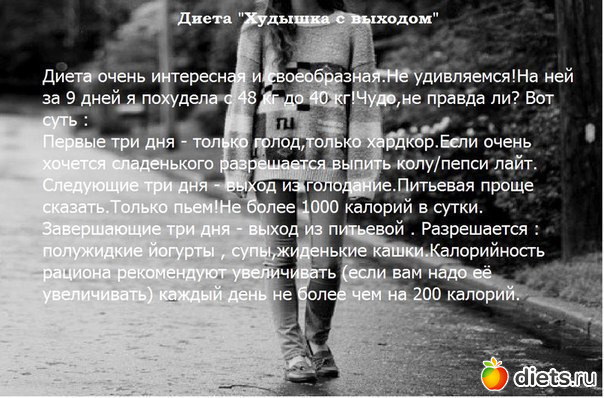 1) Начать с довольно жестких и, не особо хороших, для здоровья диет. Я понимаю, что это жуть как вредно, но я хочу помучить себя. Осознанно. Я знаю на что иду