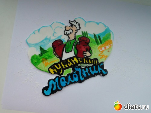 Этой частью я довольна, т.к. первый раз рисовала на мастике и как мне кажется получилось похоже, немного кривовато и буквы не идеальные, но в целом похоже)))