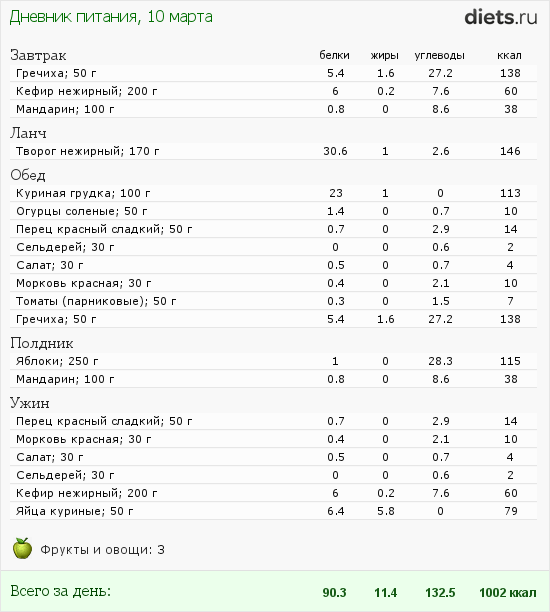 Дневник питания: 10 марта 2011