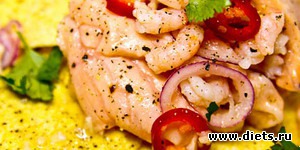 Севиче – не совсем обычный способ приготовления рыбы и морепродуктов, когда их не жарят, варят и так далее, а просто обильно заливают соком цитрусовых. Говорят, этот фокус когда-то давным-давно придумали перуанские рыбаки: когда выходишь в море на утлом баркасе, рыбы вокруг пруд пруди, а вот костер особо не разведешь, вот они и придумали поливать рыбу соком лайма.