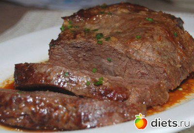 Говядина, запеченная таким способом, вкусная как в теплом виде, так и как холодная закуска.