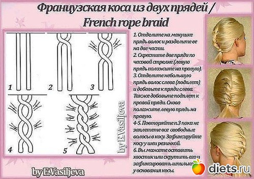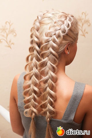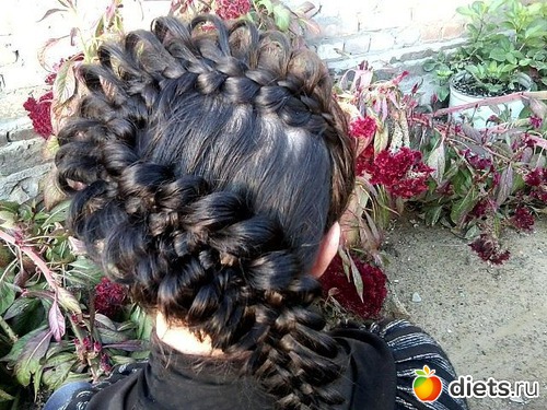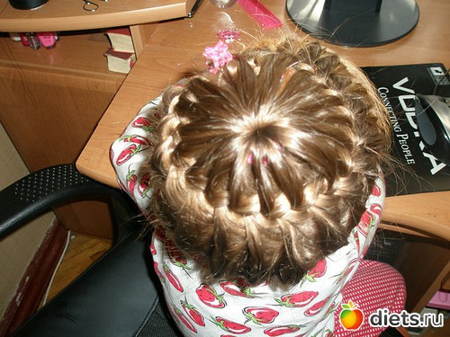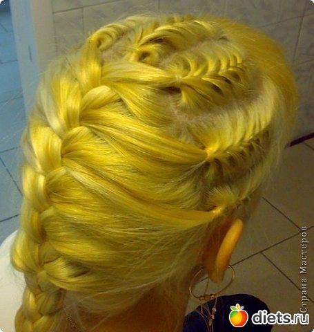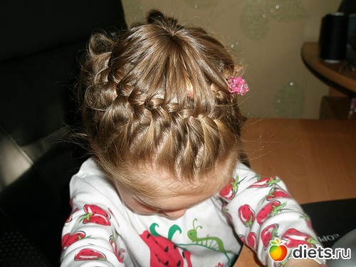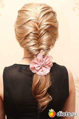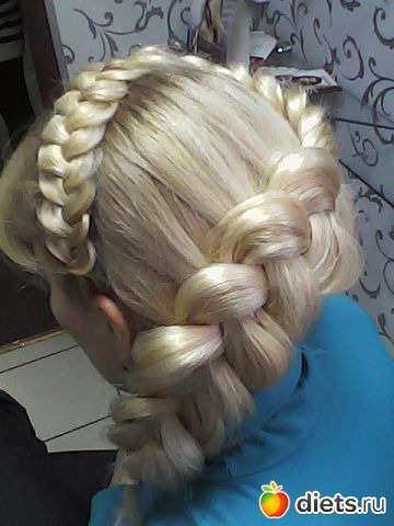 Я приноровилась плести в основном обычные колоски, колосок наизнанку и рыбьи хвосты, ну и прически на основе их.