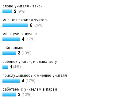 Неприятно, что родители, не выяснив проблемы ребенка дома, несутся с ними в школу. Очень обидно, неприятно. Да, и хочется сказать, что на этого ребенка ( не хочу называть имени) жалуются многие учителя (физкультура, иностранный язык, продленка). Каждый случай конфликта мы обсуждаем, делаем выводы так больше не делать, но почти все возвращается на круги своя...но за месяц есть тенденция в лучшую сторону, что несомненно радует.