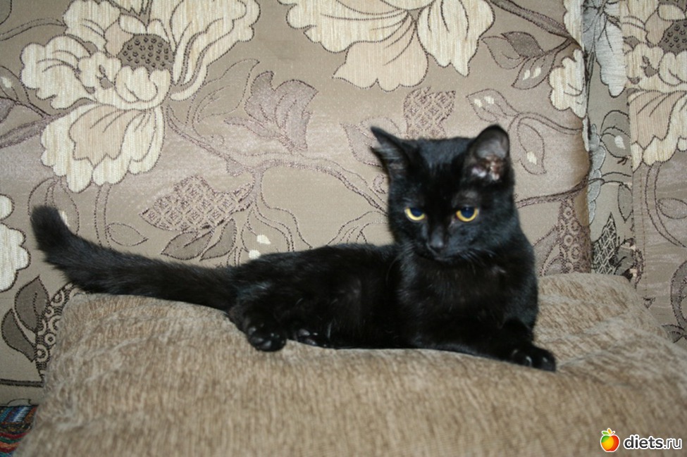 У меня второй кот Дарт Вейдер..так тьфу-тьфу-тьфу...интеллигент хренов...черный весь абсолютно, блестит весь, сам не крупный но рожу наел, спокойный, важный, не гадит, на столы не лазает, так...любопытно заглядывает...Ест спокойно, размерено...еще и повыбирает...А Зефииир...мамадорогая