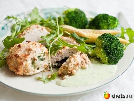 Diets.ru Рулетик из куриного филе с креветками и шпинатом