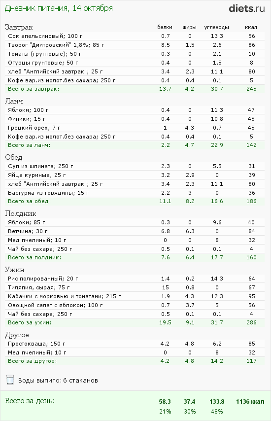 Заполняла пищевой дневник: