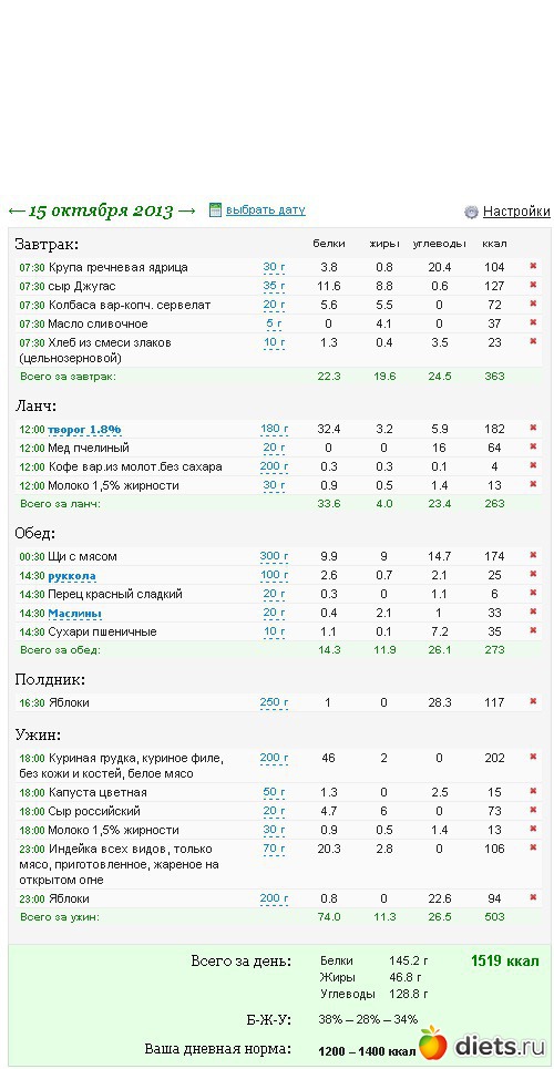 Девочки, я совсем недавно присоединилась к вашей группе, когда есть время на работе изучаю информацию) Только пока не могу разобраться с балансом КБЖУ! Посмотрите, пожалуйста, я веду дневник питания, все ли там ок? Гречку указала в сухом виде ( съела вареную порцию в 100 гр, соответственно указала 30 в сухом. Это правильно?). а индейку я ела после силовой тренировки, ужас как хотела есть! (это была половина котлеты из домашней индейки приготовленная на аэрогриле)