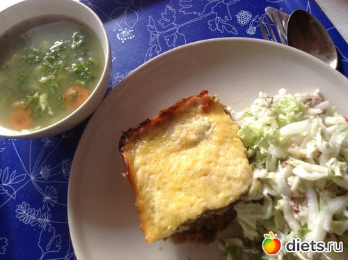 ужин - мусака с салатом из китайской капусты и яблока, у меня они на одной картинке (реально разделились)
