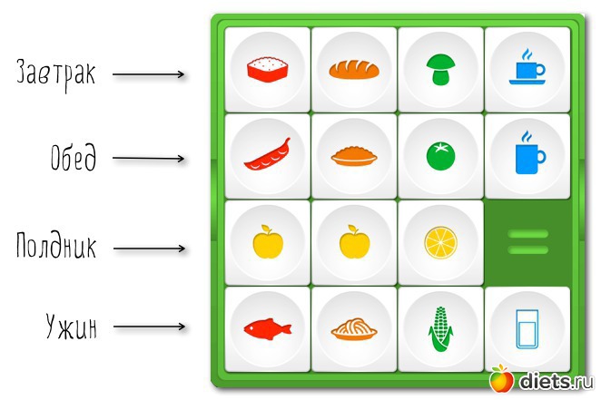 всегда внимательно изучай список продуктов (тот, что под кубиками-квадратиками) на день, тебе необходимый