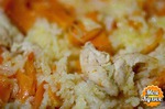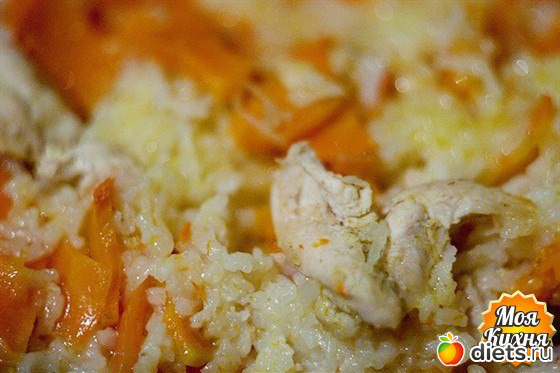 1. С куриной грудки срезаем мясо небольшими полосками. Выжимаем сок лимона, натираем имбирь и добавляем к мясу смесь перца и куркурмы, перемешиваем и оставляем так минут на 15-20. За это время можно почистить морковь, лук и тыкву.