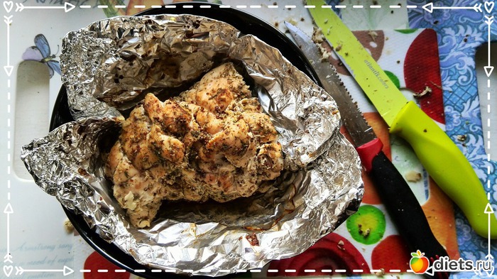 Вымачиваю курочку в соленой водичке, потом обмазываю горчицей и специями, немного соевого соуса, оставляю промариноваться! Нашпиговываю чесноком и заматываю ниткой. Делаю конвертик из фольги, чтобы только верхушка была открыта и ставлю в духовку на силиконовый коврик! Минут 20-30 и готово! Читать полностью