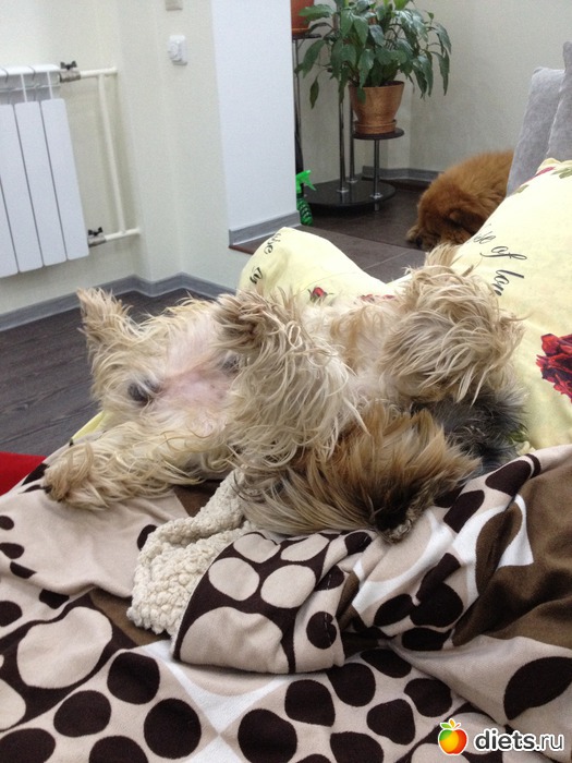 Если Бакс в постели, то и Партос ( чау- чау) тоже должен быть в постели...