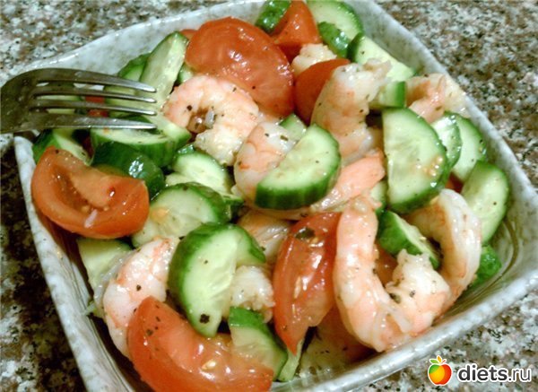 Diets.ru Салат из креветок с огурцами и помидорами
