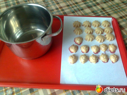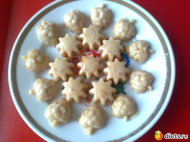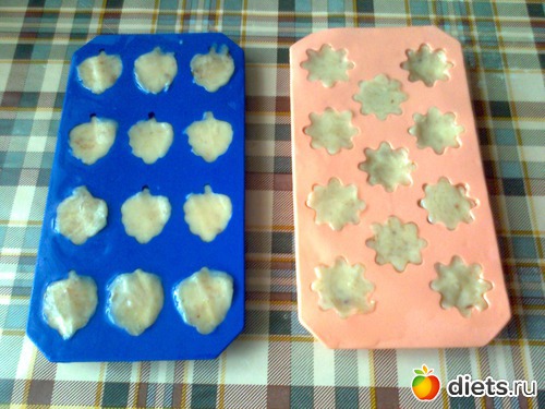 Снимаем с огня и даём остыть. Пока ещё смесь тёплая начинаем делать конфеты. Формочки для льда хорошо смазать подсолнечным маслом, руки тоже смазать маслом и начинаем катать шарики и заполнять формочки. Если формочек нет, можно оставить шарики на тарелке.