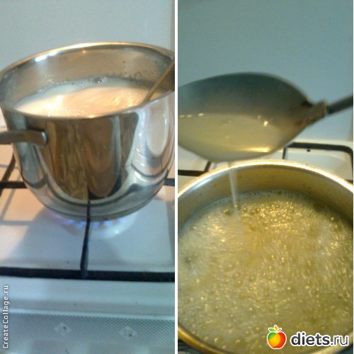 Как варим деткам кашу. Таким образом остужаем смесь. Огонь не убавлять. Если видите, что теряете контроль над пеной, сделайте огонь меньше.