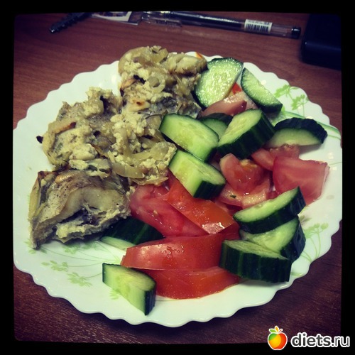 Рыбка с овощным салатом! Вчера запекла рыбу под моей "Шапкой" https://www.diets.ru/post/1062394/