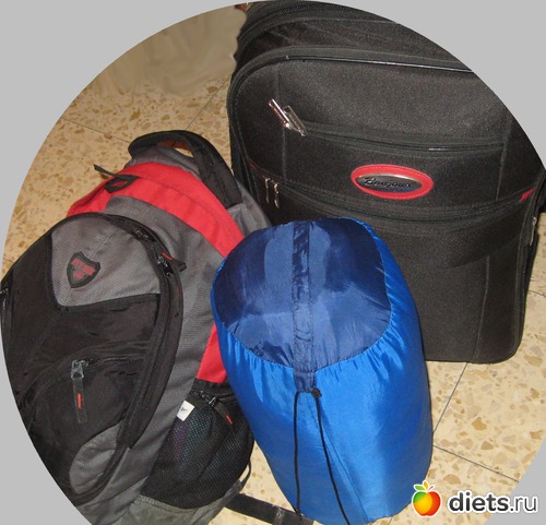 Чемодан, сумка на спину и спальный мешок, так как первые две ночи им обещано, что спать будут в бедуинских шартах. Романтика, блин