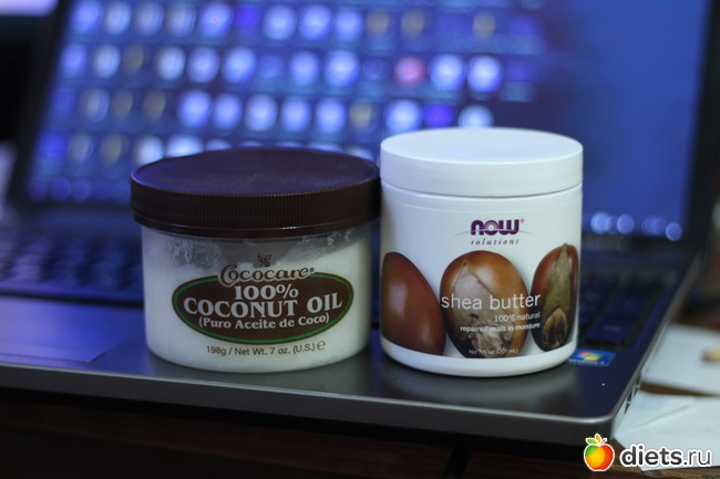Разбавляла хну горячей водой, добавила немного сока лимона, карите (ши) и кокосовое масло. У меня вот такие баночки:
