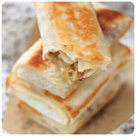 А еще можно запечь пирожок на гриле. У меня электрическая вафельница со съемными панелями, там есть панельки для гриля, мы так делали лаваш с мясом и сыром. А вот до такого пирожка и не додумались