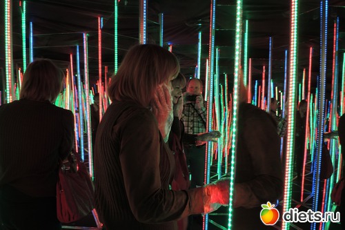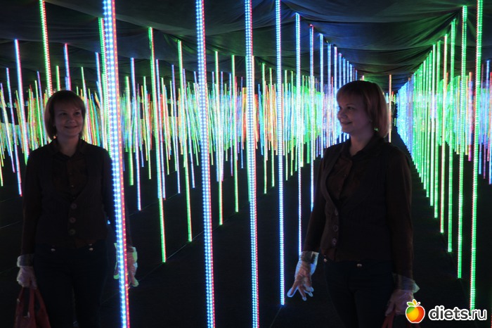 Перед входом в лабиринт выдают по паре одноразовых перчаток и просят руки держать перед собой. В принципе лабиринт довольно таки примитивный, поворот один на правильный путь, возможности заблудиться в его дебрях нет ни одной. Но среди многочисленных зеркал найти его, этот поворот, не всегда легко. Пока действительно руками путь себе не найдешь