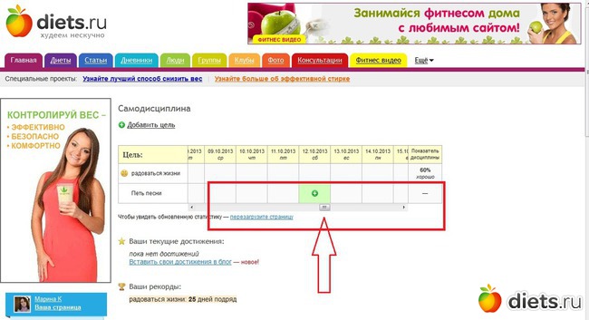 Может быть я не верно задала вопрос. Проблема в том, что я не сразу разобралась во всех возможностях сайта и не сразу создала цель в самодисциплине. Сейчас отметки я могу ставить только с даты создания цели. А у меня необходимость отметить даты "до".