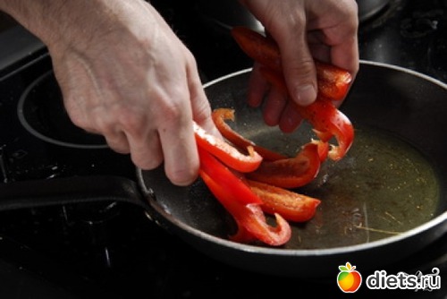 Затем обжариваем перец.