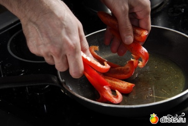 Затем обжариваем перец.
