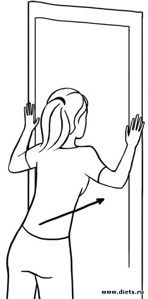 Во всех упражнениях, в положении стоя, сидя в обычной жизни старайтесь держать лопатки сведенными и опущенными, то есть воображаемая точка, в которую собирается напряжение - нижняя часть грудного отдела. Можно представить, что вас затянули в тугой корсет, который тянет ваши плечи и лопатки назад и вниз. А вот воротниковая зона должна быть максимально расслаблена. Подбородок перпендикулярен шее. Старайтесь никогда не закидывать голову назад, даже в бытовых ситуациях. Особенно резко - шея и поясница - очень нежные. Нам нужна их стабильность, а не гибкость. Гибкость нужна грудному отделу позвоночника.