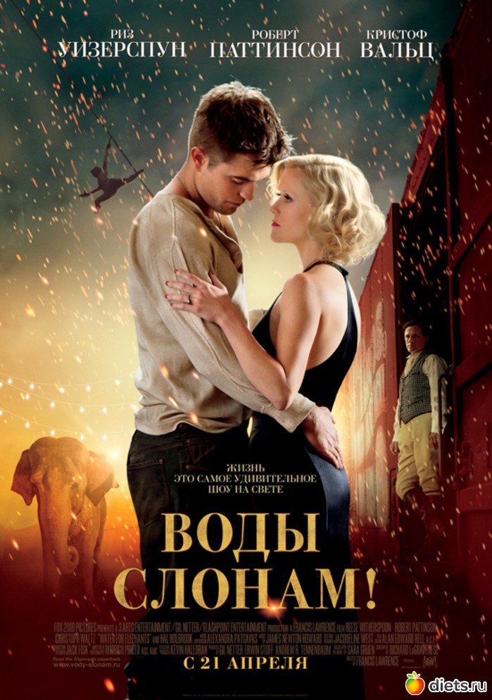 Фильм «Воды слонам!» — о любви. Но эта мелодрама рассказывает не только и не столько о любви мужчины и женщины, а о любви к цирку. Перед нами любовный треугольник: Якоб (Паттинсон), Марлена (Уизерспун) и Август (Вальц). Но помимо любви к Марлене всех троих объединяет любовь к цирку. И у каждого она проявляется по-своему. Для Якоба — это забота о цирковых животных, дорожная жизнь в дружном коллективе. Для Марлены — это вечный праздник, позволяющий забыть все горести и жить, наслаждаясь каждым мгновением. Для Августа — это собственническое отношение к цирку, и всей цирковой труппе. Очевидно те же чувства по отношению к цирку испытывают и создатели фильма. Чувствуется бережный подход к воссозданию классического антуража цирка тех годов, а также внутренней атмосферы жизни циркового коллектива.