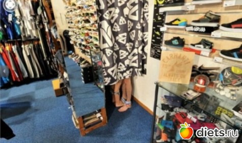 * кабинка для переодевания. Классное место для секса. Только зачастую оно оказывается очень хлипким. Бывает, что в пылу, облокотившись на стенку, партнеры разваливают конструкцию. Будет стыдно. А в общем, в кабинке для переодеваний гормоны у вас точно подскочат. Было бы отлично, если бы в кабинке стоял еще и стульчик, на который вы сможете облокотиться;