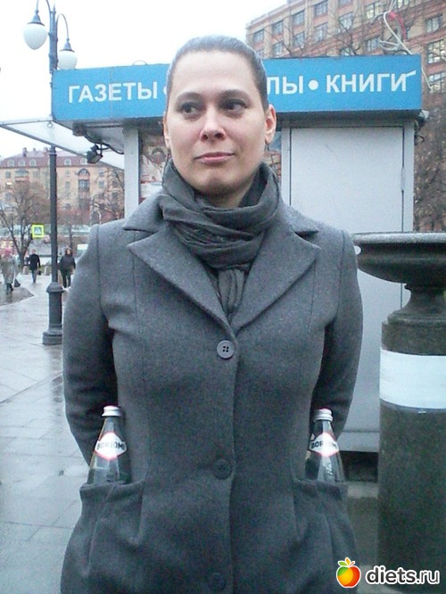 Не могла не сфотографировать Ксюшу, обратите внимание на её карманы! Вот видно, что человек ведёт здоровый образ жизни!! В обоих карманах бутылки с Боржоми!!!