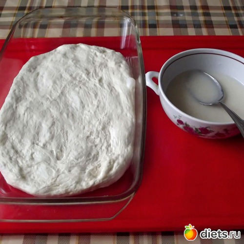 Пальцами аккуратно растягиваем лепёшку по форме, или на противне придаём форму овала (или круга).