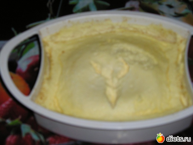 Сверху тщательно закрываем фольгой чтоб верх не размок и ставим в пароварку на 30 мин. После того как приготовиться не вынимаем из формы пока не остынет.