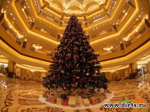 l И, наконец, отметим самую дорогую ель в мире – и самую экзотичную. Отличились, как это становится привычным, арабы. В городе Абу-Даби — столице Объединенных Арабских Эмиратов — в вестибюле самого фешенебельного отеля Emirates Palace Hotel установлена 13-ти метровая красавица ель, главной особенностью которой являются украшения. Все игрушки на елке (свыше 180 шт) – золотые, тончайшей работы, с инкрустацией из драгоценных камней. Общая стоимость елочных украшений оценивается в сумму около 11,5 млн. долларов. Менеджеры отеля рассчитывают, что эта супер-елка привлечет тысячи и тысячи новых клиентов и оправдает вложения в кратчайший срок.