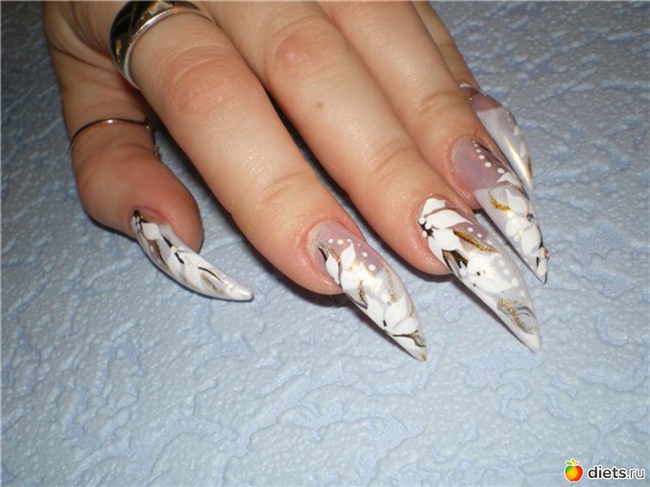против длины, остроты я не возражаю, мне не нравится рисунки, но тоже не нравятся именно эти и потому ,что не модно ,а когда модно было я носила рисунки, но на более коротких и не такой формы -я вообще считаю , что носить надо то, что модно , если есть возможность и если это идёт