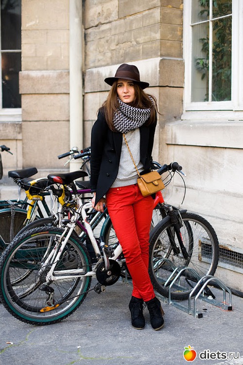 Мне нравится образ девушки в мужской шляпе. И разноцветный джемпер.