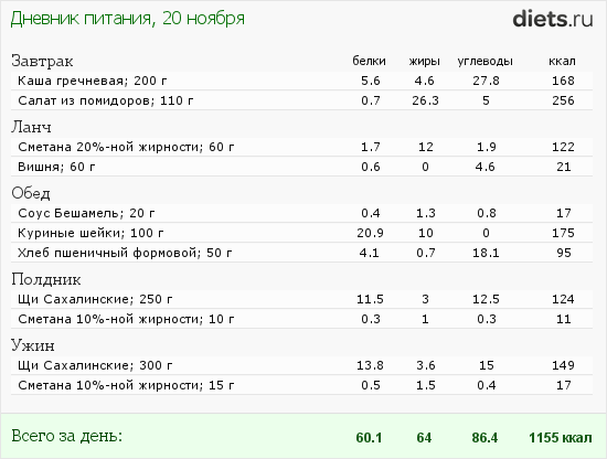 В этот день я попыталась уменьшить количество калорий в день и уложилась в 1200. А вот с жирами очень даже налажала, удвоила их от допустимой мне нормы