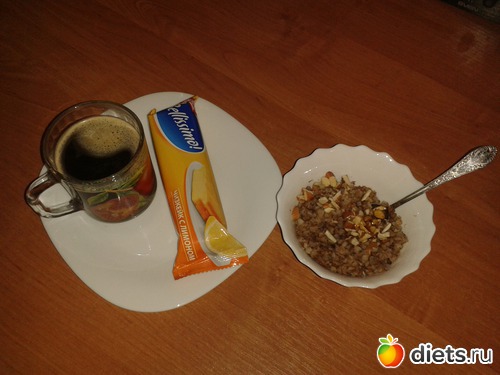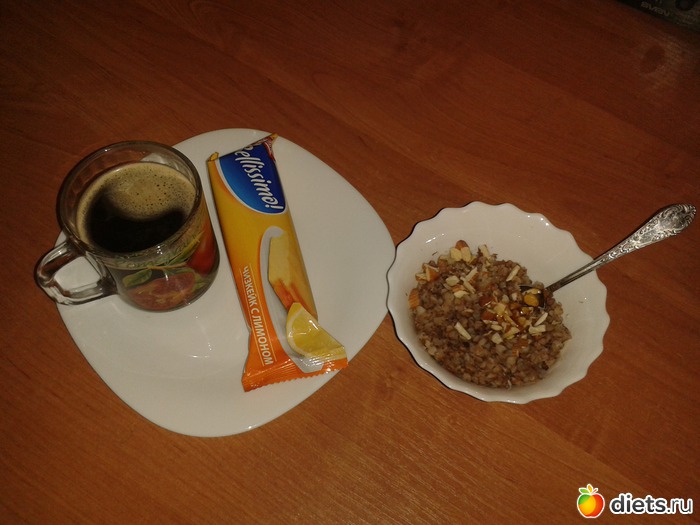 Сегодня день начала с гречневой каши с медом и миндалем, и слопала какой-то десерт называется чизкейк лимонный )))