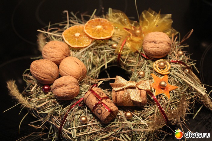 Все коричнево-охровое. Добавить яркое пятно и все будет супер новогодним и "не магазинным"
