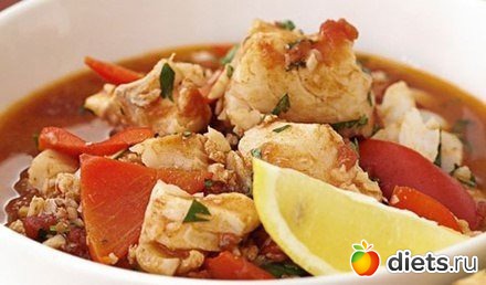 5. Готовое блюдо посыпать мелко нарезанным укропом, украсить кружками лимона.