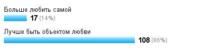 Но вот, и меня начало тянуть к дивану. Возраст более, чем детородный (мне больше тридцати), и пора переходить от слов к построению личной жизни, уже без шуток. У меня есть выбор из двух достойных мужчин: один с "санками", другой с "характером". Разум говорит, что "до гроба" комфортней жить с тем кто ТЕБЯ любит, а сердце и прочие предательские органы голосуют за своего кандидата. Вот такая, старая как мир, дилемма. Очень хотелось бы узнать мнение женщин давно замужних: как у вас? Кто больше любит: Вы или ОН? И что, по вашему лучше для тихого семейного быта? Как компенсируете - если это, вообще, надо? Всем тем, кто за абсолютную взаимность и обоюдную страсть, я попрошу подождать результатов опроса... Поскольку меня, именно, сравнение сейчас интересует. Здорово, когда нет сомнений, ноу меня сейчас другая ситуацимя