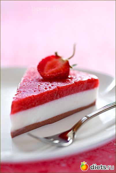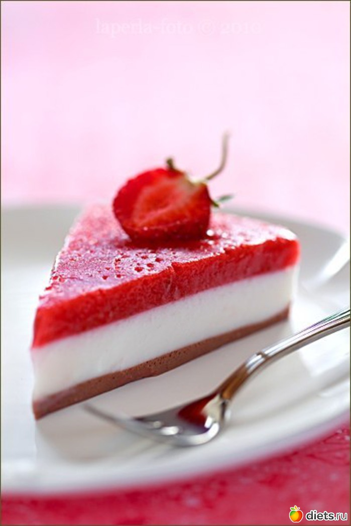 Клубничный слой: Залей желатин водой и отставь на 10 минут. Нагрей на среднем огне, помешивая, до растворения желатина. Охлади. Смешай клубничное пюре с сахаром и желатиновой смесью. Вылей смесь на застывший йогуртный слой и снова отправь в холодильник.