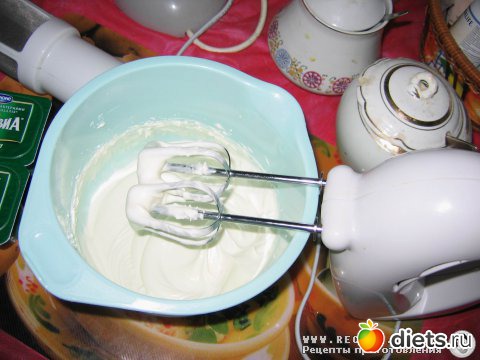 Шаг 5. Охлажденные сливки взбить миксером вместе с сахарной пудрой.