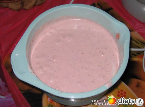 Шаг 6. Добавить йогурт и клубничное пюре.