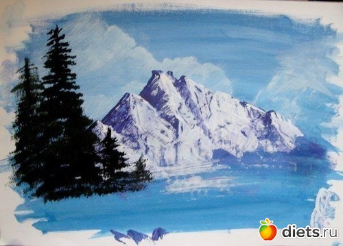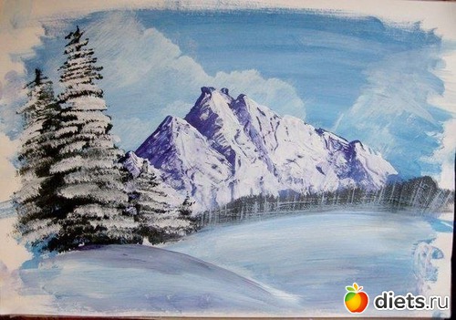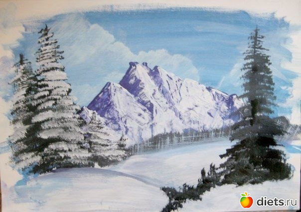 Зимний пейзаж гуашью 1.