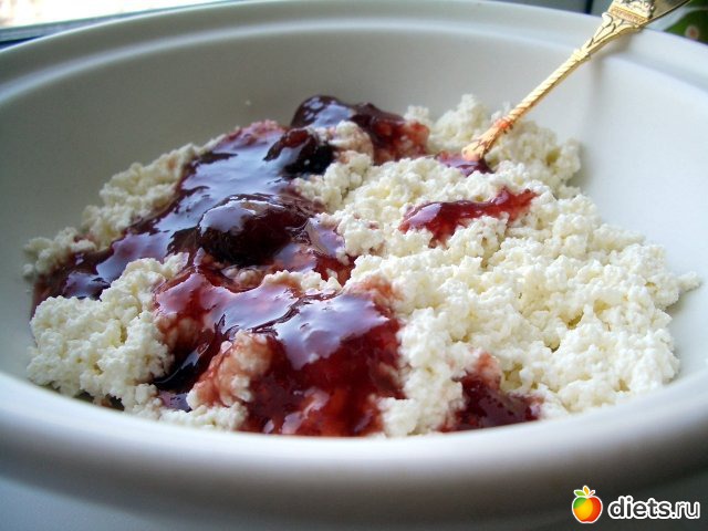 Завтрак: Как обычно, творог, варенье из смородины, клетчатка, кофемолоко, сыр, хлебец