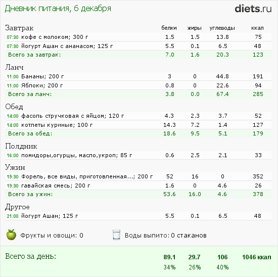 Калорийность продуктов