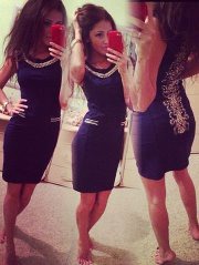 я бы себе купила платье более яркого оттенка.с открытой спиной.